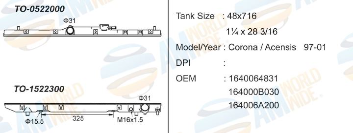 318 SERIES / Z3 / 525i 1.8 / 1.9 lts L4 DPI 528 / 979 / 1295 AT with hole O.C.for MT W/O holes see BM-0304500